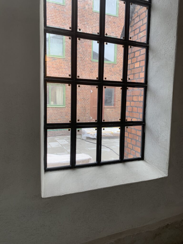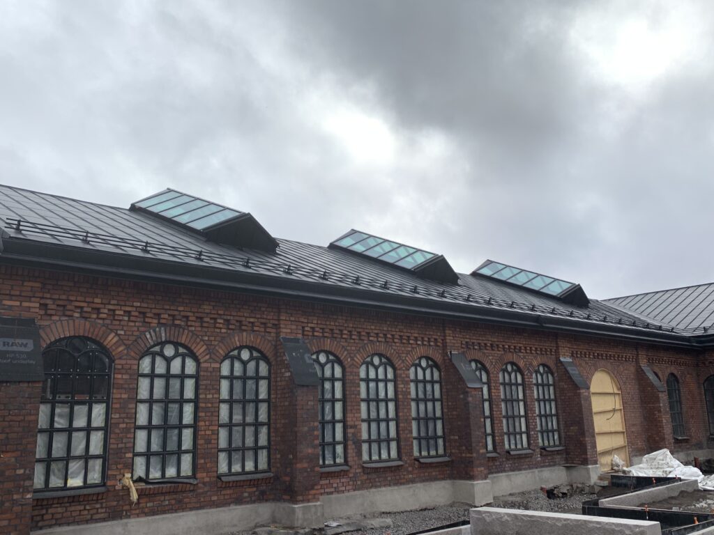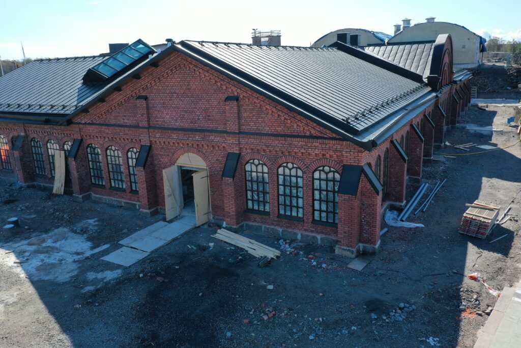 Den u-formade fabriken var i riktigt dåligt skick när renoveringen startade. Det västra hörnet hade så stora sättningar att väggarna fick plockas ner, tegelsten för tegelsten. Hela grunden och fönstersmygarna har nu pålats och man har murat om hela hörnet. De trasiga tegelstenarna på fasaden har bytts ut, och nya, svarta fogar bryter av mot det varmröda teglet. Den gamla fabriken har fått liv på nytt.