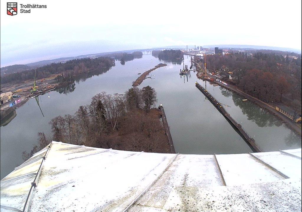 På Trollhättans stads hemsida kan vi nu följa arbetet med Stridsbergsbron live. Längst upp på ett av järnvägsbrons torn har en kamera monterats och via länk kan vi se allt som den ser.