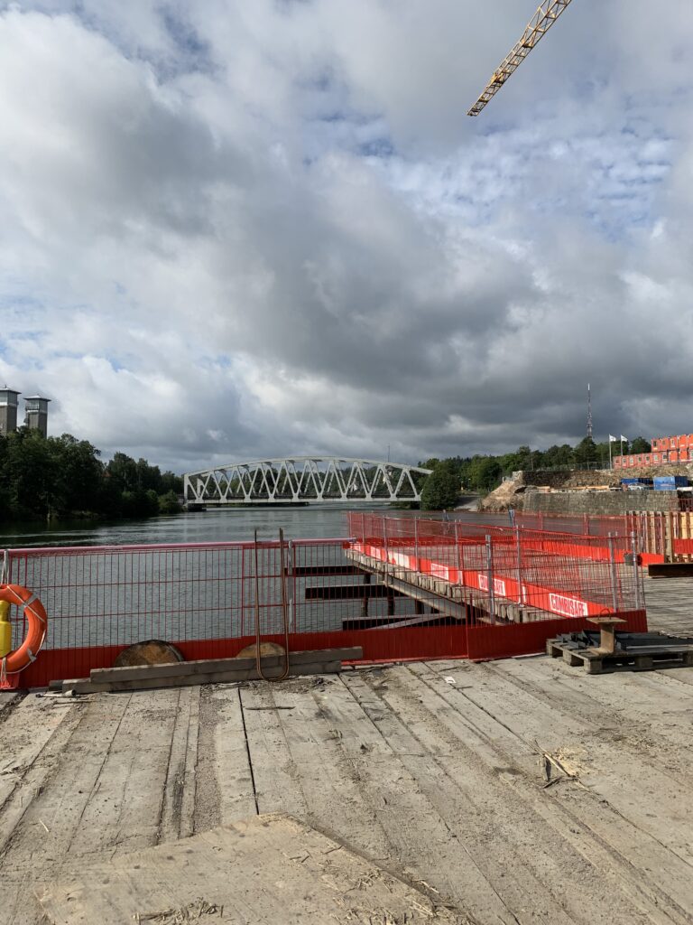 Just nu pågår bland annat arbetet med de båda klaffkamrarna, en på varsin sida om det som kommer att bli den öppningsbara delen av bron. Stora som padelbanor (cirka 15 meter långa) hälften under vattenytan, hälften ovan, ska kamrarna rymma motvikten som hjälper till att höja och sänka klaffen. Hydraulik, elektronik och den teknikcentral som krävs för att styra hela kalaset ska också få plats inne i kammaren. Självklart behöver allt detta vara väl förankrat i berget och det är därför sprängningarna nu pågår, för att komma ner på det djup som är nödvändigt för detta.