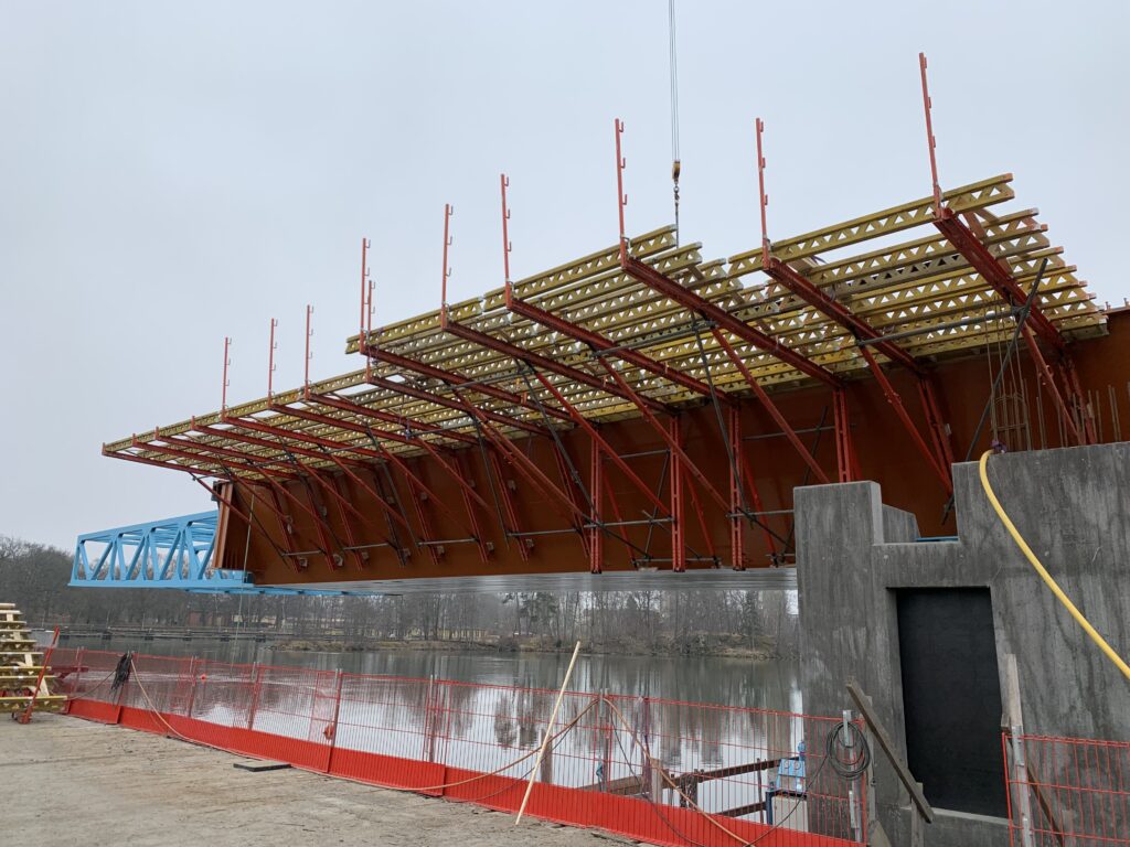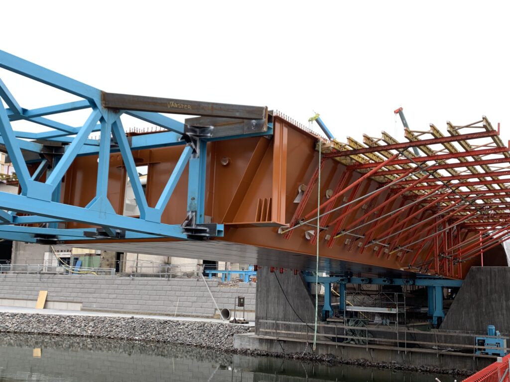 I dagarna har det levererats cirka 60 meter stålbro till Vårvik uppdelat i flera, mer hanterbara segment. Under ett års tid har segmenten tillverkats i Halmstad för att sedan fraktas hit, målas i rätt rödbrun kulör och svetsas ihop till en sammanhängande konstruktion. Nu när den delen är avklarad har man påbörjat lanseringen vilket innebär att de sammansvetsade brosegmenten skjuts på plats över brostöden. Fram till mitten av juni ska det lanseras ut totalt 148 meter bro från Vårvik. De kvarvarande 88 metrarna levereras, målas och svetsas allteftersom.