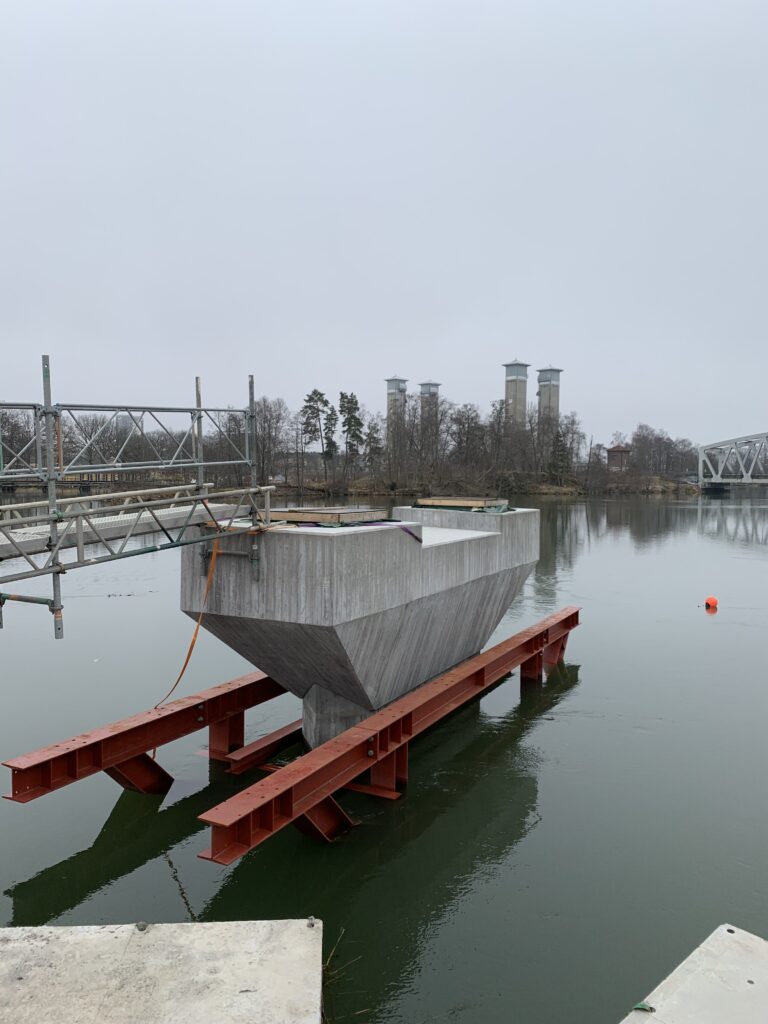 I över ett år har det pågått förberedande arbete för just det här momentet. Fram tills nu har produktionen av Stridsbergsbron bestått av främst undervattensarbeten och gjutning av brostöd. Dessa är självklart fundamentala arbeten men nu är dags att introducera den första permanenta, horisontella komponenten. En del av själva överfarten kommer på plats, västra tillfartsbron.